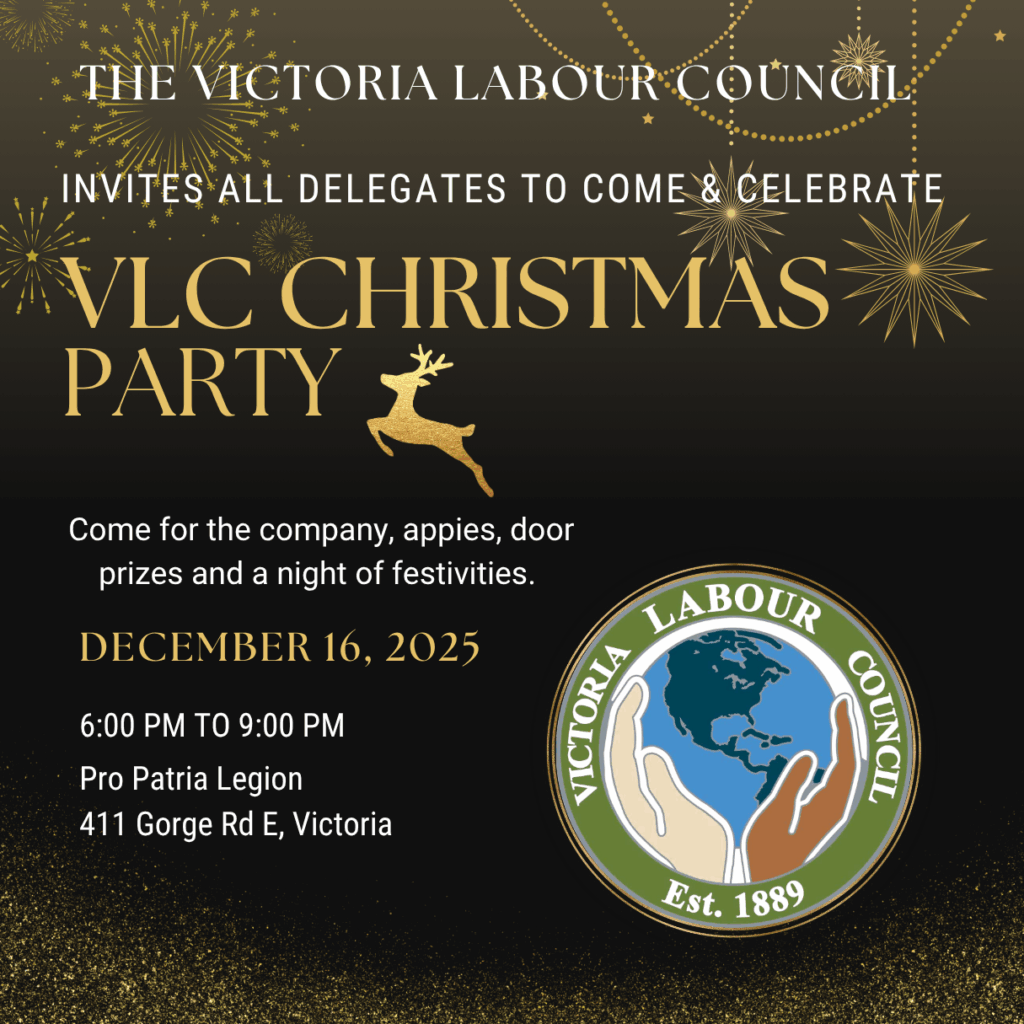 Delegates, join us at the Pro Patria Legion on Tuesday December 16, from 6:00 pm to 9:00 pm to celebrate our past year of solidarity and community.